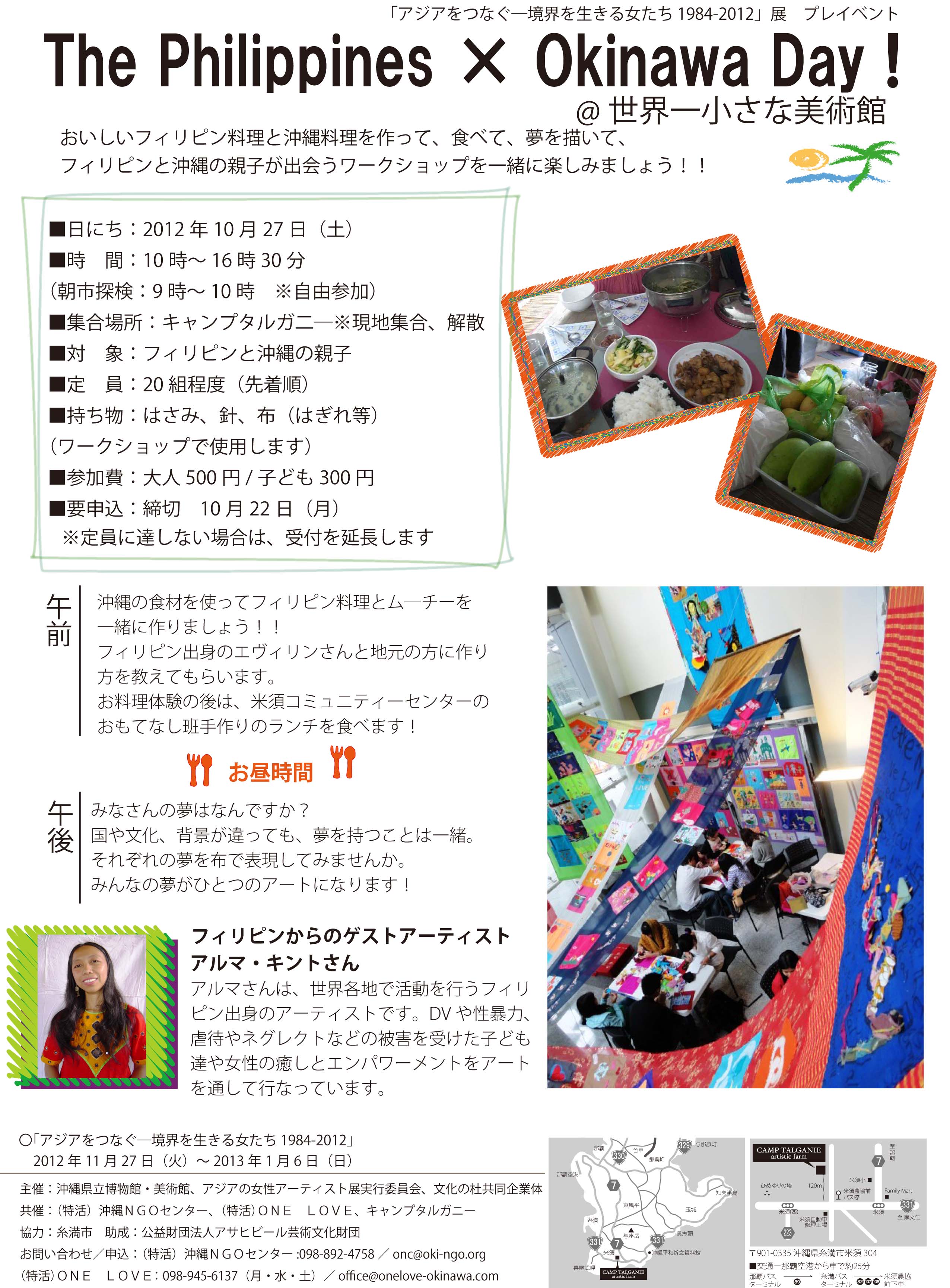 対象:フィリピンと沖縄の親子20組程度(先着順/要申込み:10/22(月)締切)
